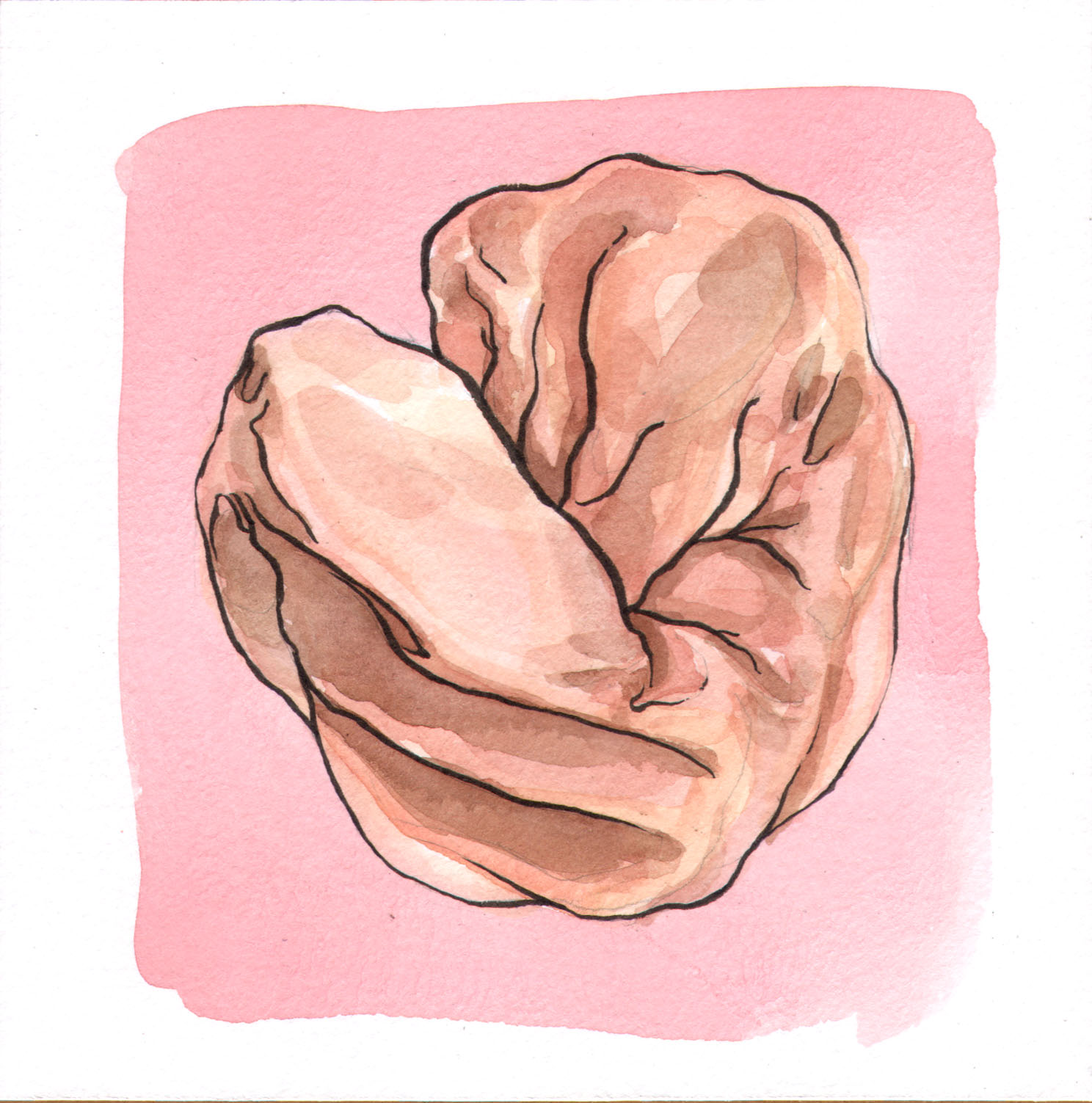 "Umeboshi Girl" Original art. Ink and watercolor. Canson 140 lbs watercolor paper. 5" x 5"