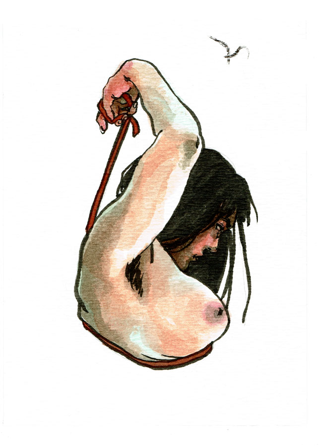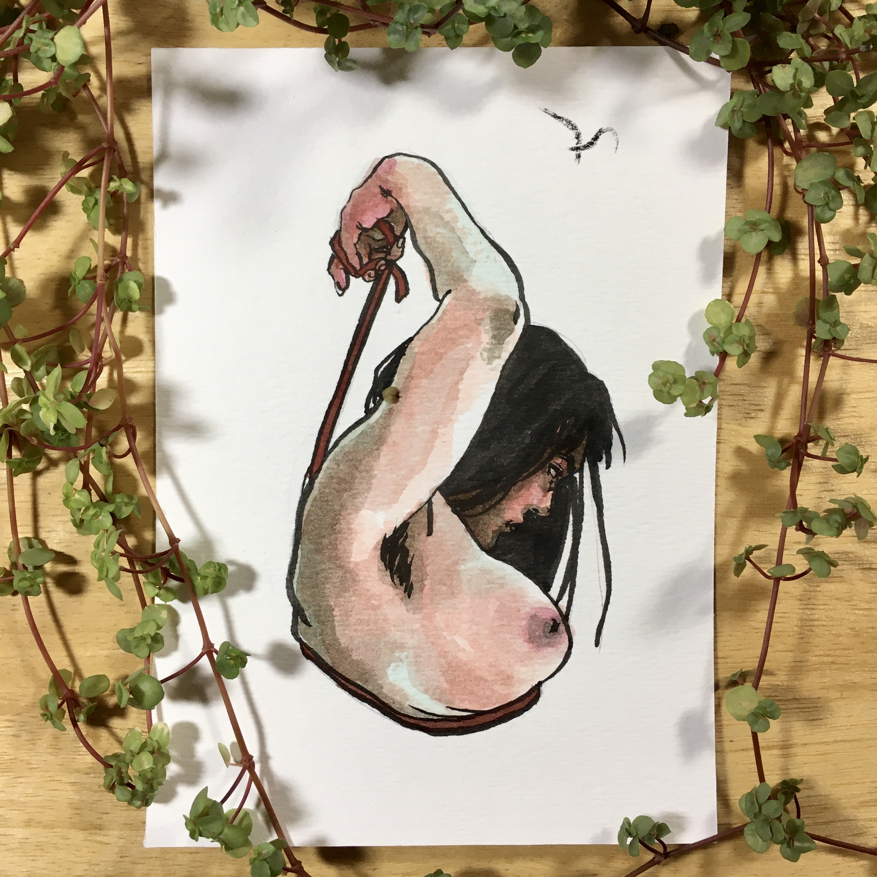 "Flight" Original art. Ink and watercolor. Watercolor cold press paper. 4 3/4" x 6 5/8"
