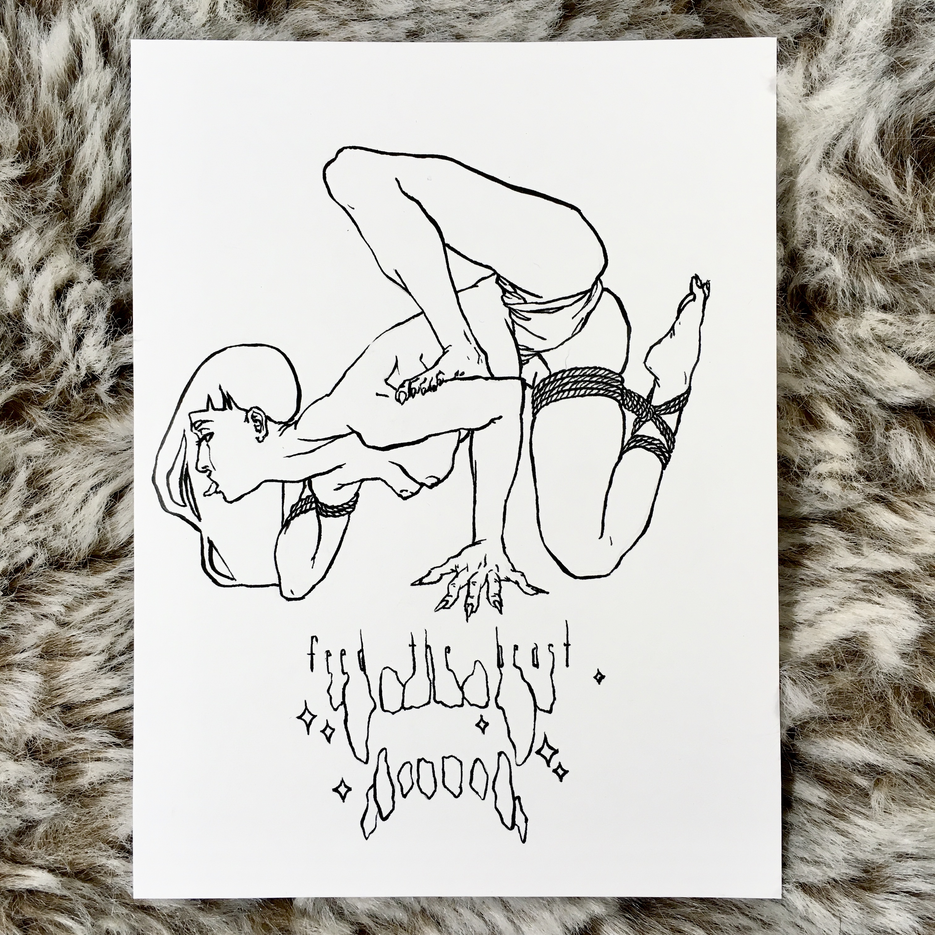 "Feed The Beast" Original art. Ink. Bristol paper. 6" x 8"