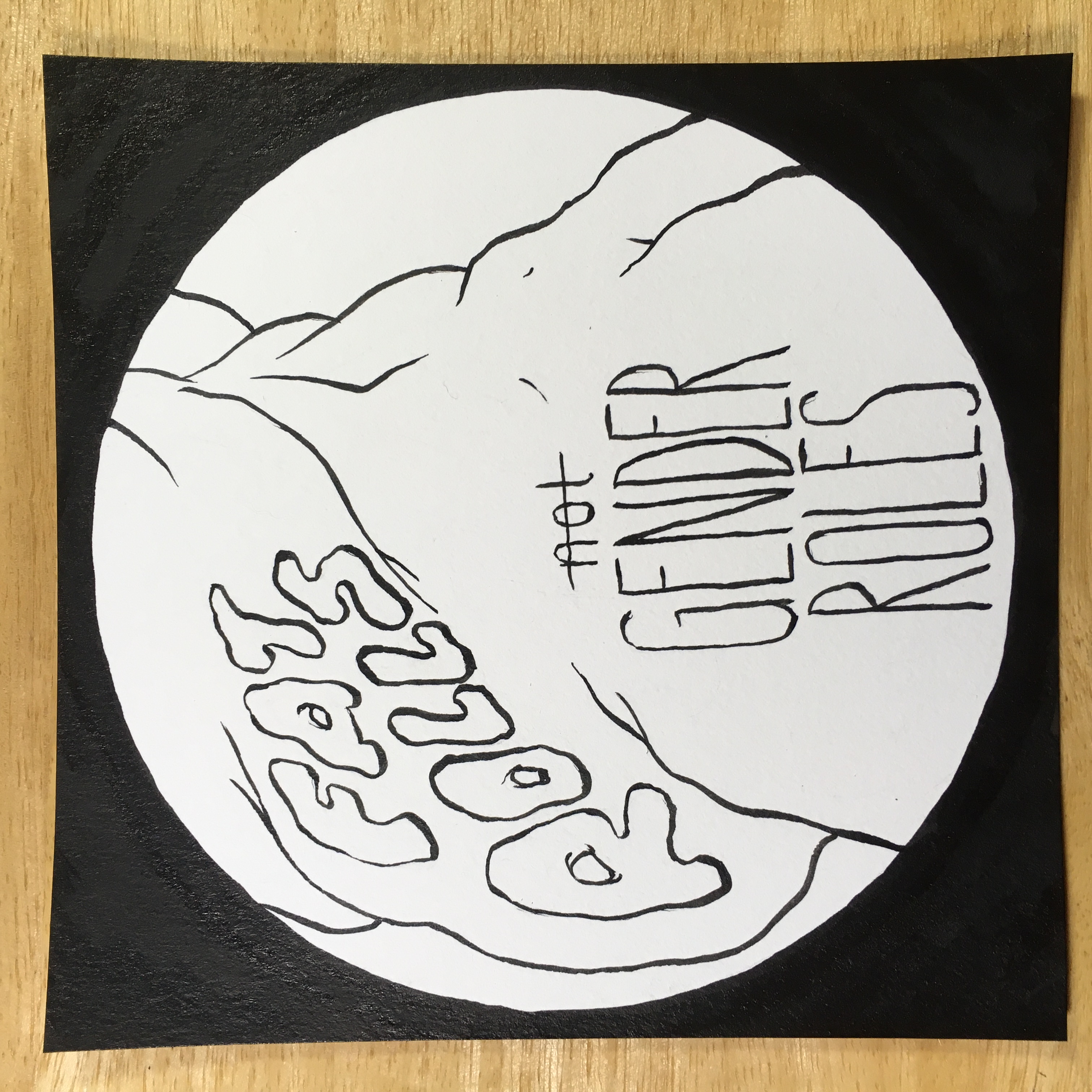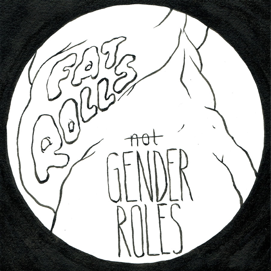 "Fat Rolls Not Gender Roles" Original art. Ink. Cold pressed watercolor paper. 6 1/4" x 6 1/2"