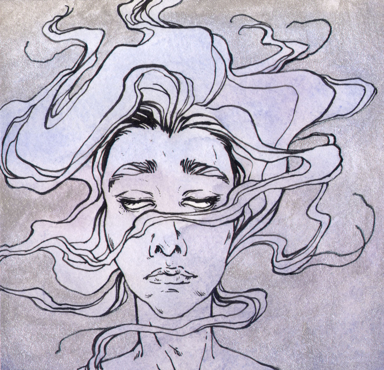 2017 Inktober Original Black ink, silver ink and watercolor on 140lbs watercolor paper. 4.5" x 4.25"