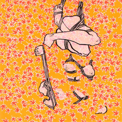 From the "Origami Cut Out Cuties" Collection. Original art. Ink, Glue, Vellum paper, and Origami paper. 6" x 6"