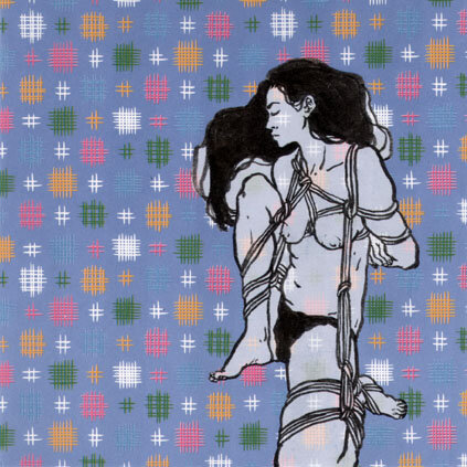 From the "Origami Cut Out Cuties" Collection. Original art. Ink, Glue, Vellum paper, and Origami paper. 6" x 6"